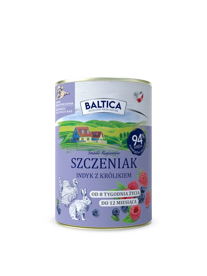 Zapewnienie szczeniakowi najlepszego startu w życie to priorytet każdego troskliwego opiekuna. Baltica Puppy Indyk z Królikiem to karma mokra stworzona z myślą o najbardziej wrażliwych i wymagających młodych psach. Dzięki wykwintnemu połączeniu indyka i królika, ta bezzbożowa receptura stanowi fundament wysoko strawnej diety, wspierającej zdrowy rozwój i prawidłowy wzrost Twojego pupila od pierwszych dni. To idealny wybór dla właścicieli, którzy pragną dać swoim szczeniakom to, co najlepsze – pełnowartościowe źródła białka i pyszne dodatki gwarantujące energię i witalność.