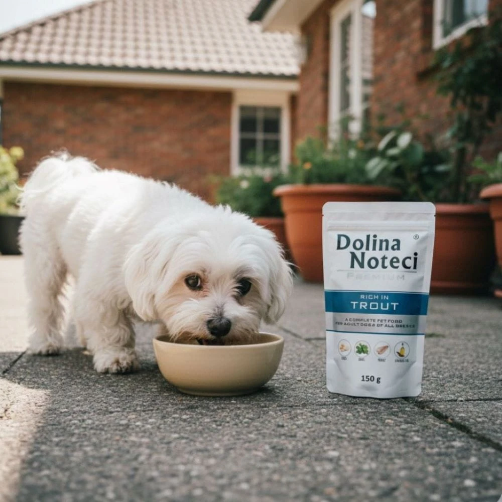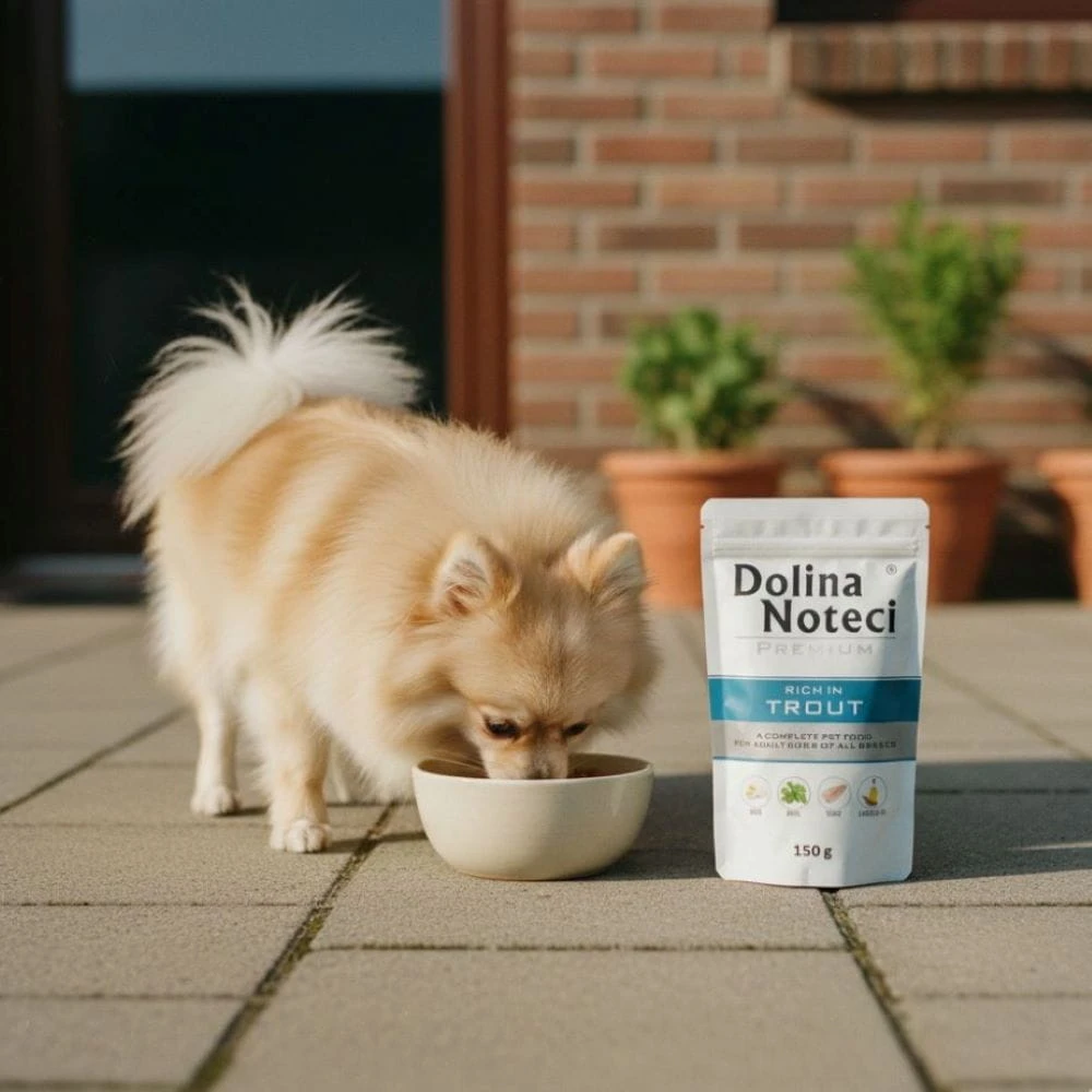 Dolina Noteci Premium bogata w pstrąga to pełnoporcjowa karma mokra dla psa z pstrągiem, przeznaczona dla dorosłych psów wszystkich ras. Odpowiednio zbilansowany skład pozwala kompleksowo zaspokoić zapotrzebowanie na składniki odżywcze.