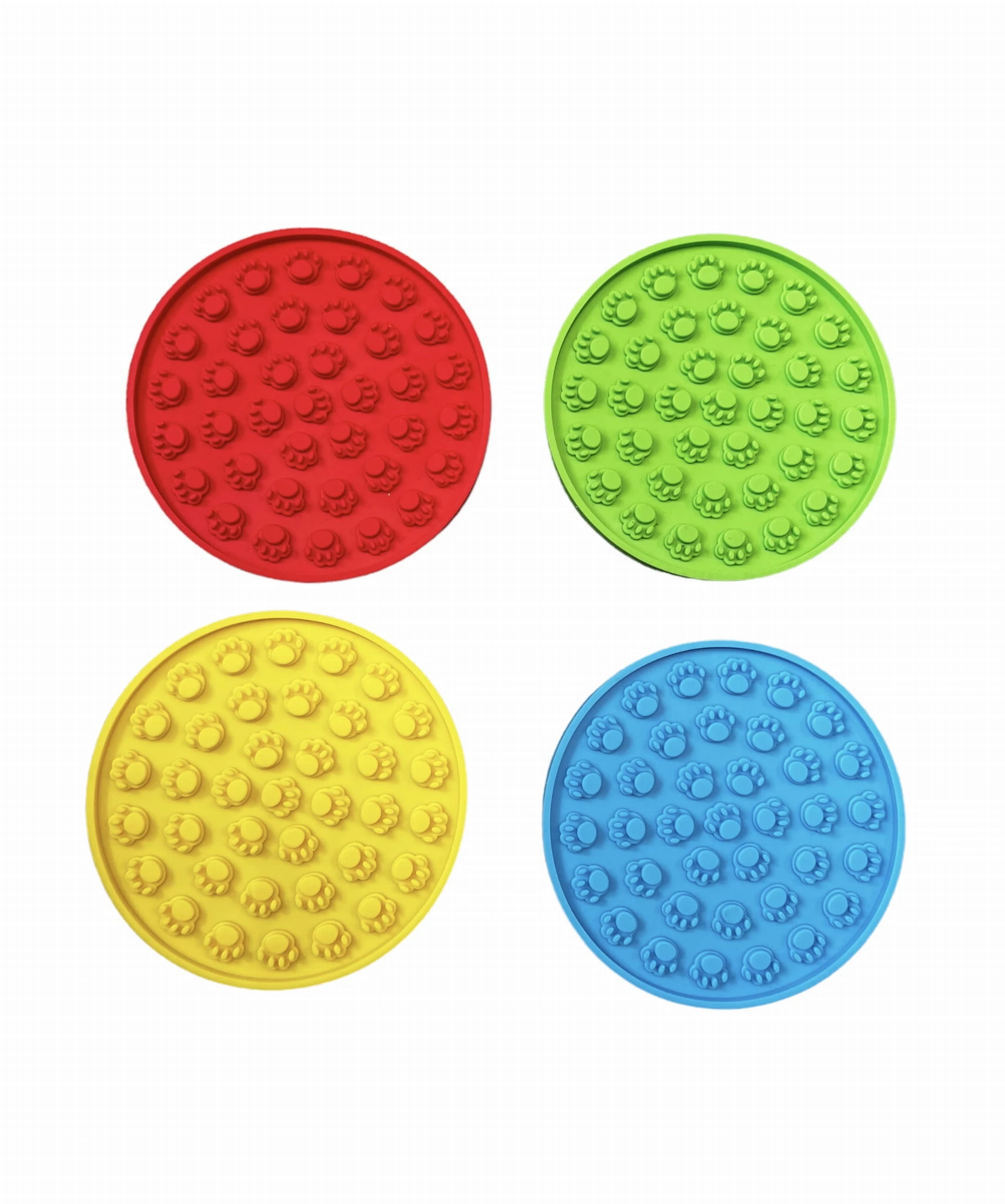Oferuj swojemu psu relaksującą i interaktywną zabawę dzięki naszej Licki Mat - kółko z wypustkami w kształcie łapek! Ta innowacyjna mata do lizania jest dostępna w czterech jaskrawych kolorach – żółtym, czerwonym, zielonym i niebieskim – idealna do stymulacji i zaspokajania naturalnych instynktów Twojego pupila.