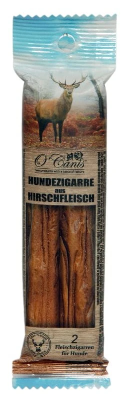 Cygara O'Canis to wyjątkowy przysmak, stworzony w 100% z mięsa mięśniowego jelenia. To zdrowa i naturalna przekąska, idealna między posiłkami, która zaspokoi naturalną potrzebę żucia Twojego psa.