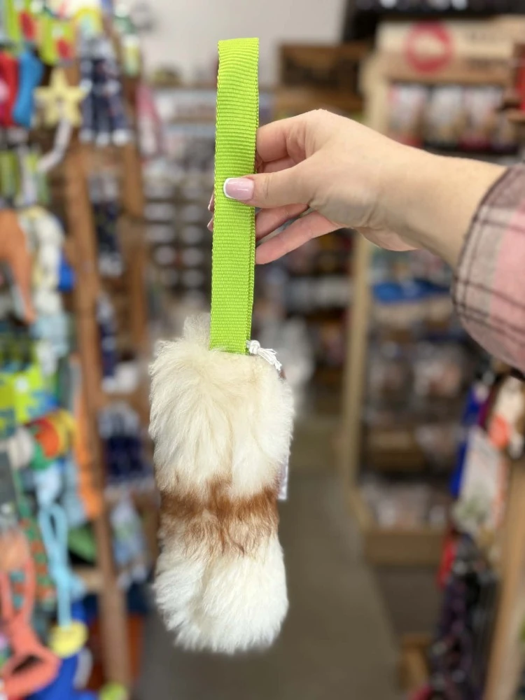 Szarpak dla psa z naturalnego futra owczego sprawdzi się do zabawy oraz szkolenia. Zapach owcy i futro mogą zachęcać do aktywności, a ręczne wykonanie podkreśla charakter tej zabawki.