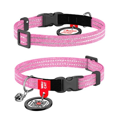 WAUCAT Re-cotton obroża dla kota i małego psa – bawełniana, odblaskowa, QR adresówka, różowa 20–30 cm
