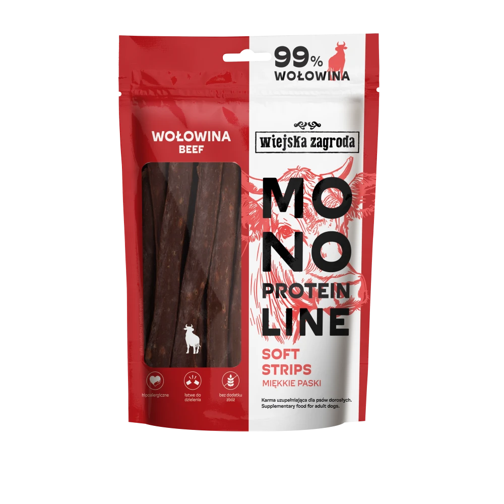 Wiejska Zagroda Przysmak dla psa Monoproteinowe miękkie paski Wołowina 100 g