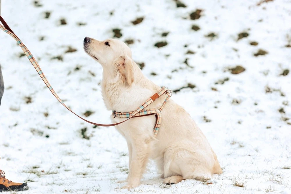 - Regulowane szelki dla psa do codziennych spacerów.