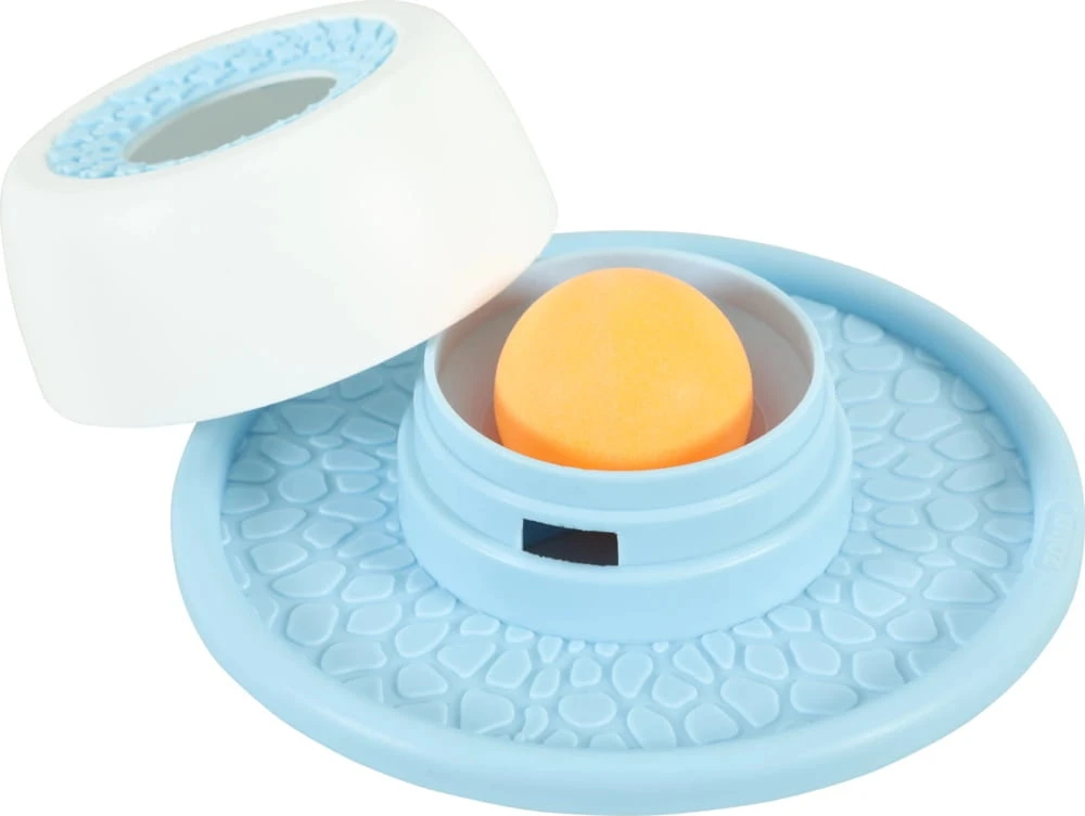 Interaktywna miska spowalniająca dla psa została zaprojektowana z myślą o bardziej angażującym podawaniu przysmaków Sweeties. Wykonana z trwałego tworzywa sztucznego i silikonu, ma wgłębienia oraz kulkę, które zachęcają psa do aktywności podczas korzystania z produktu.