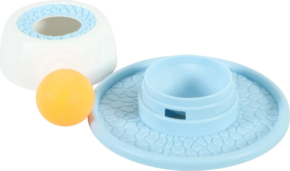 Interaktywna miska spowalniająca dla psa łączy funkcję podawania przysmaku z aktywnością podczas użytkowania. Przemyślana konstrukcja z wgłębieniami i kulką zachęca psa do korzystania z produktu w bardziej angażujący sposób.
