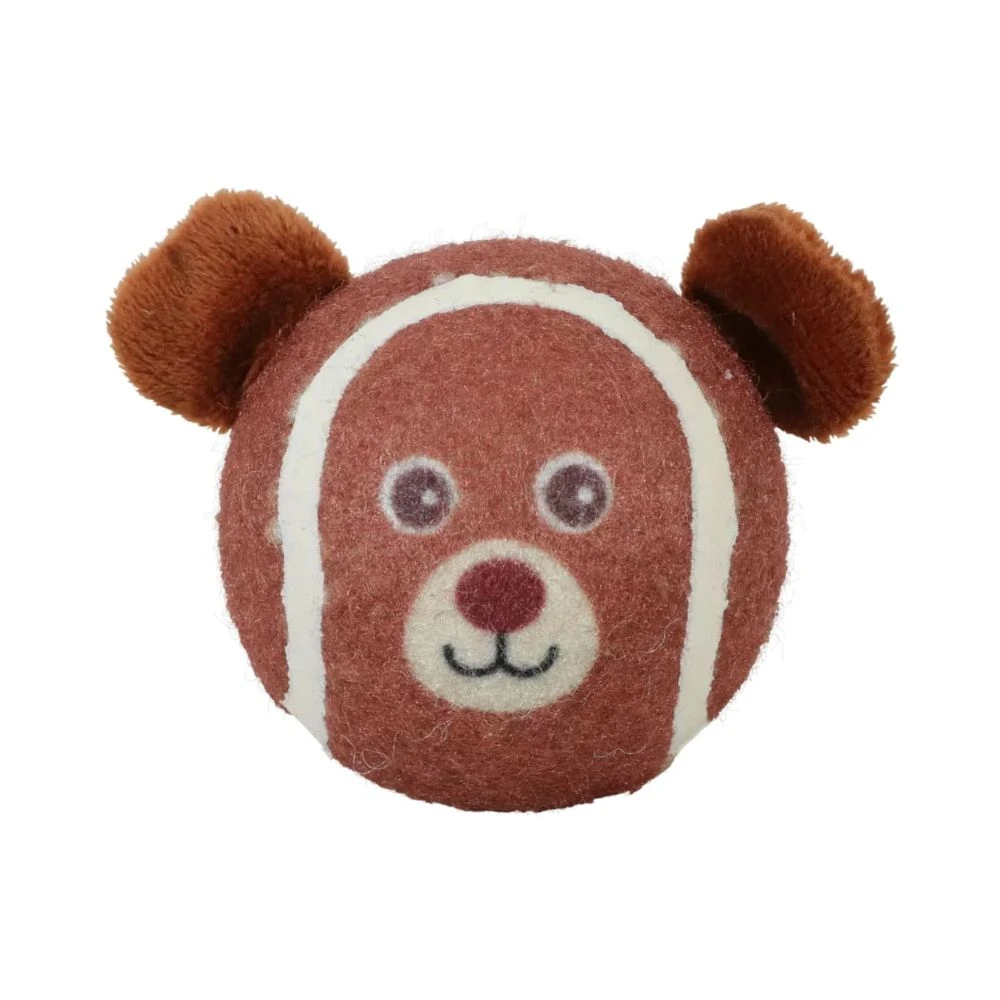 Piłka tenisowa dla psa z piszczałką w rozmiarze S została przygotowana z myślą o zabawie w rzucanie i aportowanie. Forma misia, małe wymiary 6,5 x 4,5 x 5 cm oraz wykorzystanie materiałów z recyklingu sprawiają, że to praktyczny wybór dla małych psów.