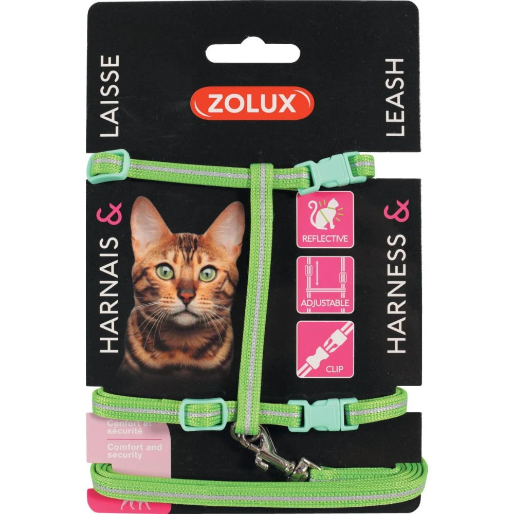 ZOLUX zestaw spacerowy dla kota szelki i smycz zielony 120 cm
