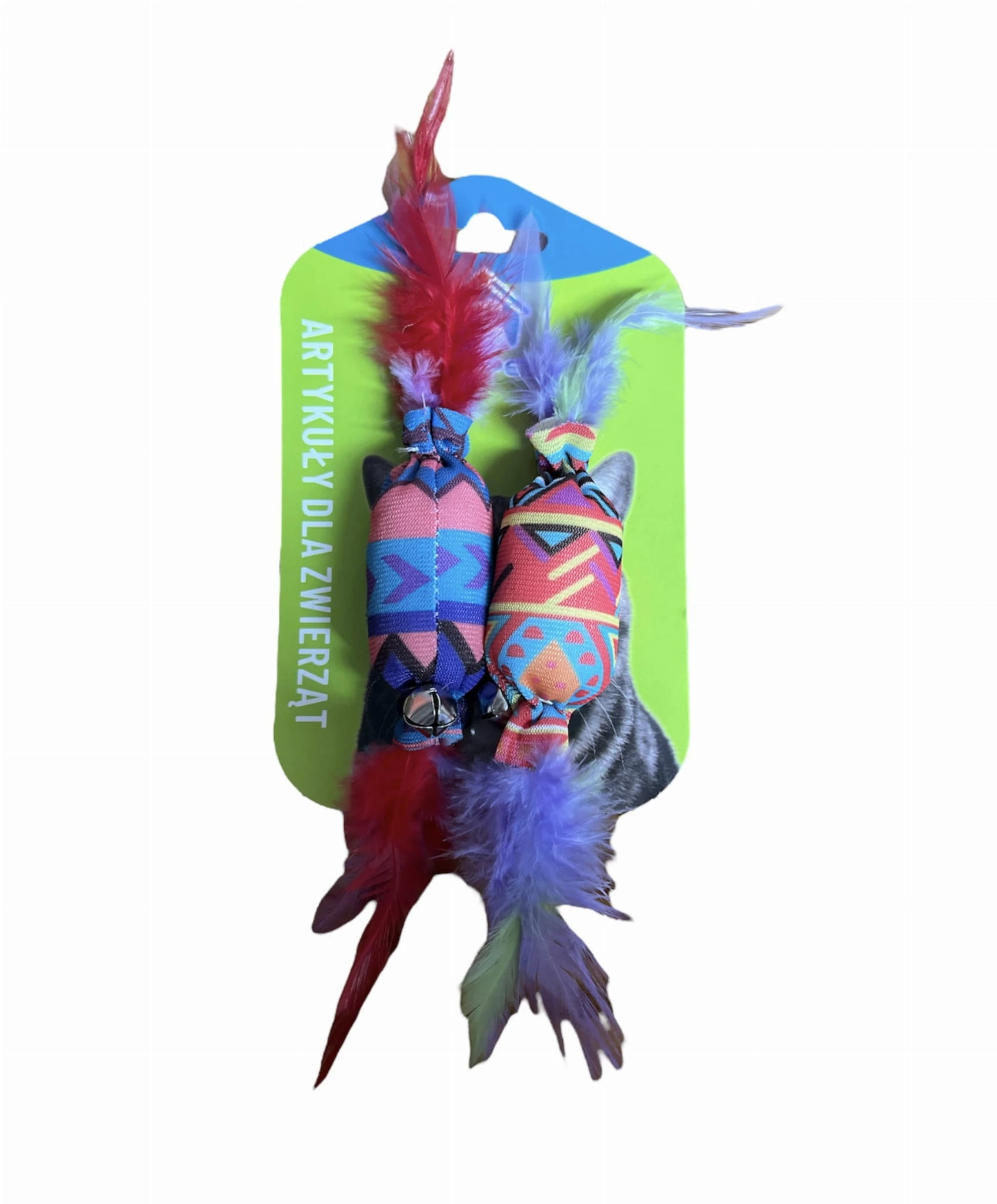 - Dodatki: Kolorowe piórka dodające zabawce atrakcyjności i stymulujące zmysły kota