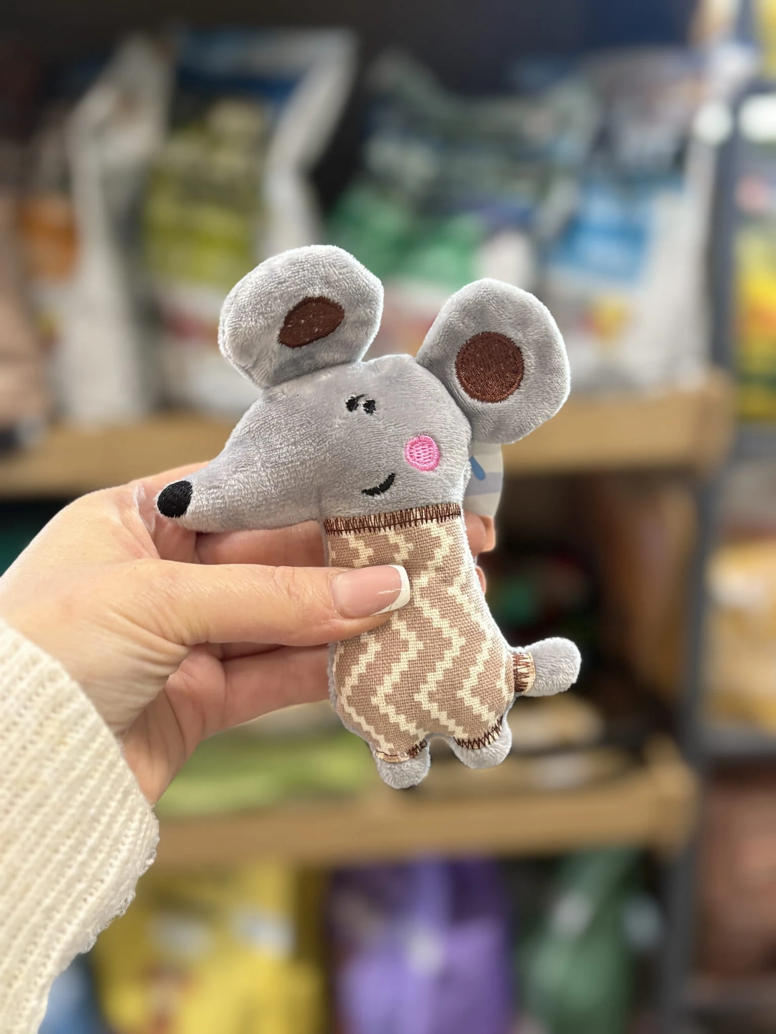 Wykonana z miękkiego, przyjemnego w dotyku materiału, nasza pluszowa myszka jest idealna do łapania, gryzienia i przytulania. Zabawka z pewnością przyciągnie uwagę każdego kota, zachęcając go do polowania i zabawy.