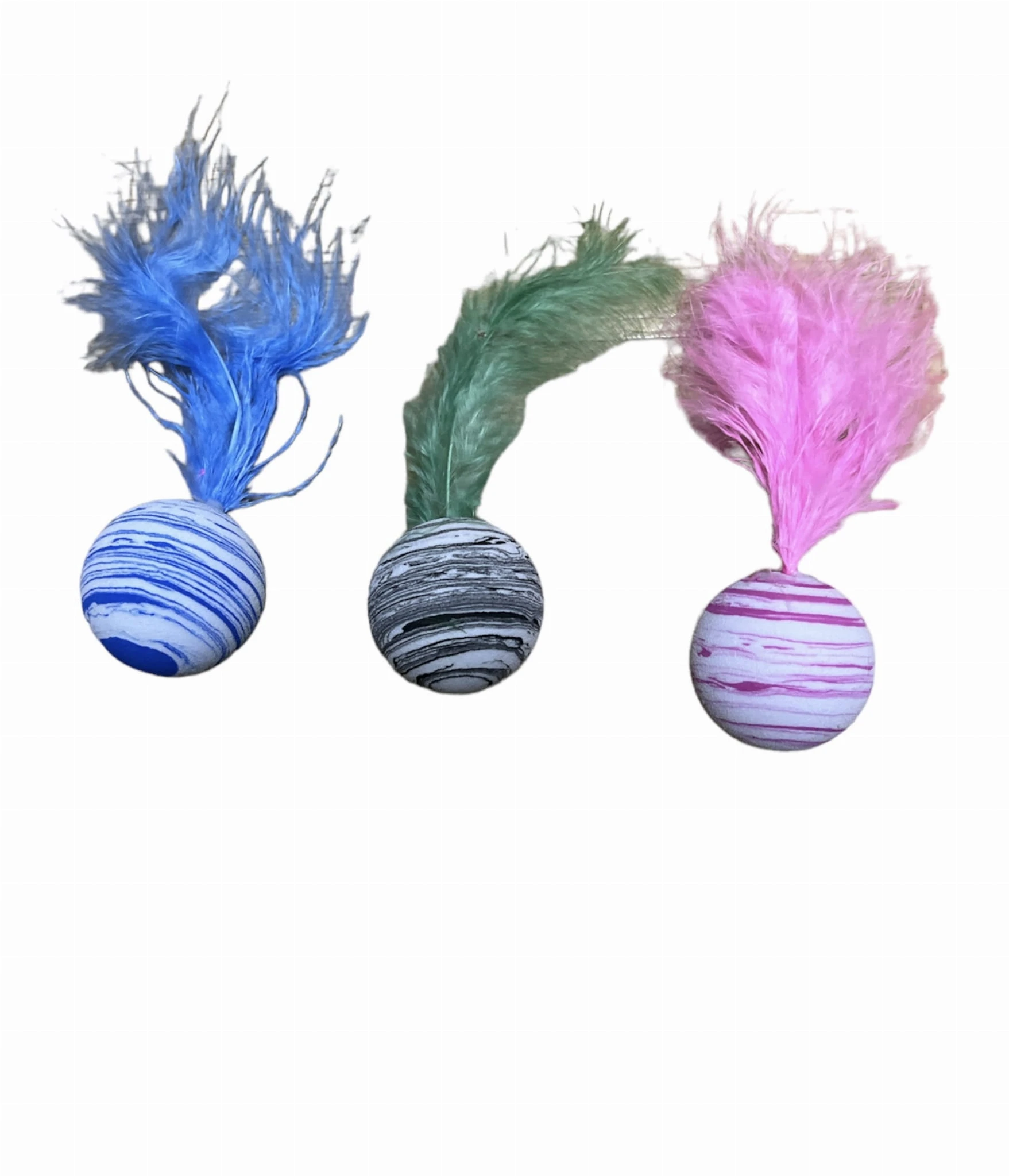 Piórkowe dodatki: Pióro na końcu piłeczki przyciąga uwagę kota i dodaje zabawie ekstra uroku.